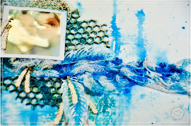 W efekcie powstały białe pąki róż oraz jasno różowe delikatne różyczki w 3 rozmiarach. Różyczki wycięłam wykrojnikiem od APScraft o wdzięcznej nazwie - szczęściarz, natomiast zielone listeczki również z foamiranu wycięte co prawda z kwiatowego wykrojnika lilia, lecz tutaj sprawdził się rewelacyjnie Tło również stworzyłam własnymi łapkami :) Tekturowy napis pochodzący z Paper Passion potraktowałam delikatnie gessem i nadałam nieco połysku.
